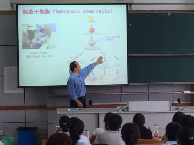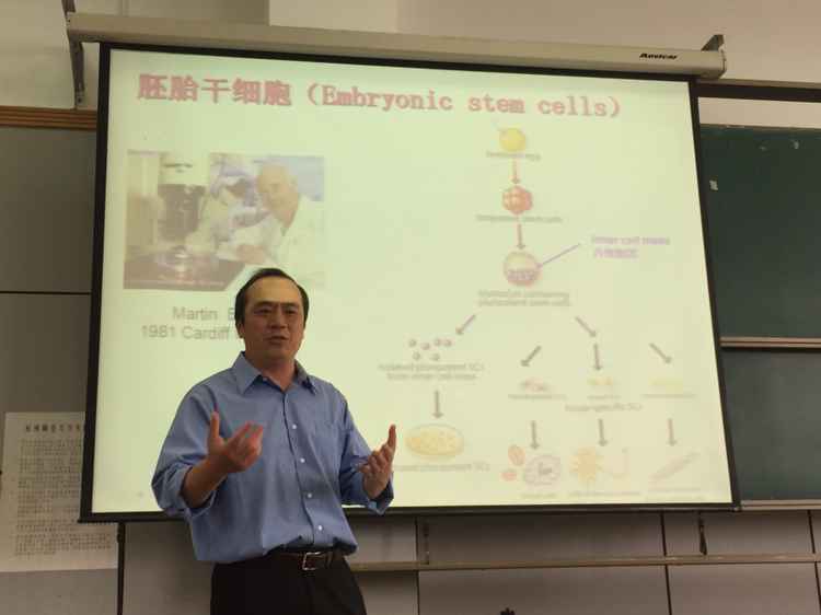 首先,邱教授就什么是干细胞的问题将同学们带入了今天的主题。他告诉我们,干细胞是生物体内一类特殊的细胞,具有增殖与向多种不同细胞发育分化能力,最终形成新的组织,并且可以分为胚胎干细胞,成体干细胞以及诱导干细胞三种。而胚胎干细胞可以用来制备基因敲除小鼠,此外对基因治疗方面也有着很重要的贡献。然而,邱教授特意指出,由于免疫排斥反应以及伦理道德方面的争议,胚胎干细胞真正实现治疗人类疾病还面临巨大的难题。而成体干细胞以及神经干细胞的应用也并非一帆风顺。获取困难,增值速度慢,易感染也成为了基因治疗前进道路上的一道坎。接着,邱教授表示,目前全球干细胞研究还处于瓶颈阶段,同时也面临着许多问题要解决,科学家们正在为人类的发展而不懈努力着。讲座最后,他向同学们介绍了干细胞研究新趋势,同时也提出了一些令人深思的问题。