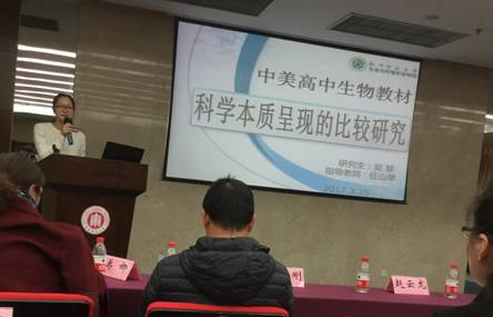 本次会议分别由全国生物学教学研究会理事张文华教授、华东师范大学教师教育学院生物课程与教学论专业的郑晓蕙教授、上海市教委教研室中学生命科学教研员周韧刚老师进行大会主旨报告,来自全国各地的一线教师、教研员、高校教授及研究生等达上百人。由郑晓蕙教授与张文华教授分别主持“生物教育教学研究论文交流”论坛及“生物学教育论文写作与投稿经验交流”论坛,每个论坛有6位教师或教研员发言,全球最大博彩公司排名 16级学科教学专业共9名研究生参与此次会议,其中,吴慧同学在分论坛一以“中美高中生物教材科学本质呈现的比较研究”为主题向大会报告其研究成果。