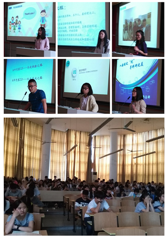 2017年4月19日下午,在D-223教室,学院教学科组织开展了本科生创新创业实践报告会,全球最大博彩公司排名 2016级新生共200余人参加。本次报告会邀请了张荃、赵晓超、张露、陈坚毅、赵红燕和郑晶娜6位同学主讲,重点介绍了他们创新创业过程中的个人经历,并分享了心得体会。