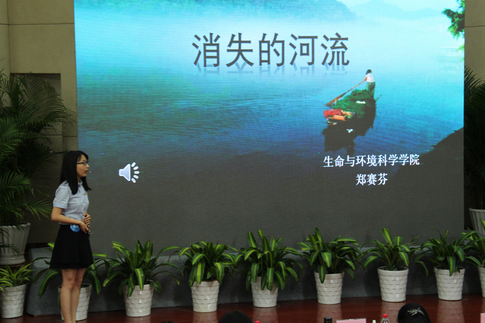 什么心情,就有什么色彩,什么观点,就有什么视觉。郑赛芬同学经过初赛、复赛,成功进入决赛,以“消失的河流”为演讲题目,将视角注视到了家乡的一条河流,通过河流污染的照片呈现,到河流整治的变化,锐利切入当下的“水污染”现状,同时与学院“绿之翼”环保协会的活动结合起来,发出保护水资源的倡议。郑赛芬同学的评论以政府努力、青年使命、全民责任的宏观视角,与浙江省“剿灭劣V类水”的当下行动相呼应,发出了作为一名研究生的倡议和号召,肩负起了高校青年的社会责任感。