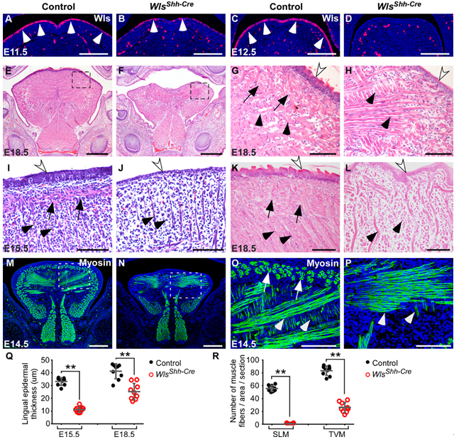 小鼠舌表皮Wntless缺失会导致舌表皮以及肌肉发育异常