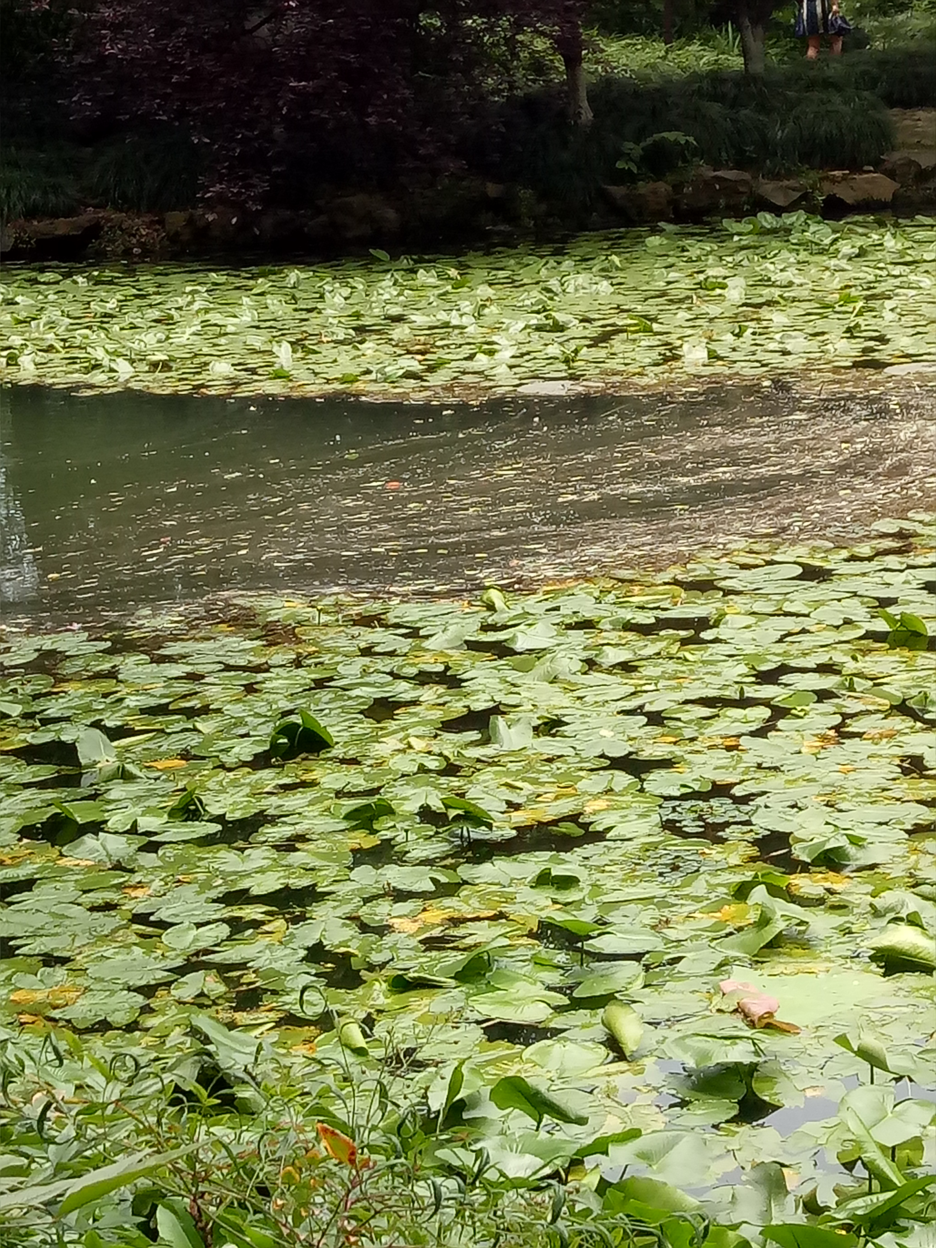 接着,两位同学来到了“曲院风荷”景点。“曲院风荷”视野开阔,有一大片荷塘,荷塘中荷花盛开,抬头望去是一片碧蓝的天空。景点的小道上十分干净,荷塘上飘着几片落叶、未打捞的枯萎的荷叶,还有些浮萍,使荷塘显得不那么整洁。小队成员们关于景区水质问题和垃圾分类问题再次向游客与环卫工人做了提问,得到的回答却并不乐观,游客会向荷塘乱扔食品包装袋和塑料纸,垃圾分类也做得不够,水面上还时常飘着烟蒂和小朋友们的玩具废弃物。“不过令人欣慰的是今年的荷花开得特别好,水质么也就那么回事了。”一位大妈如是说道。