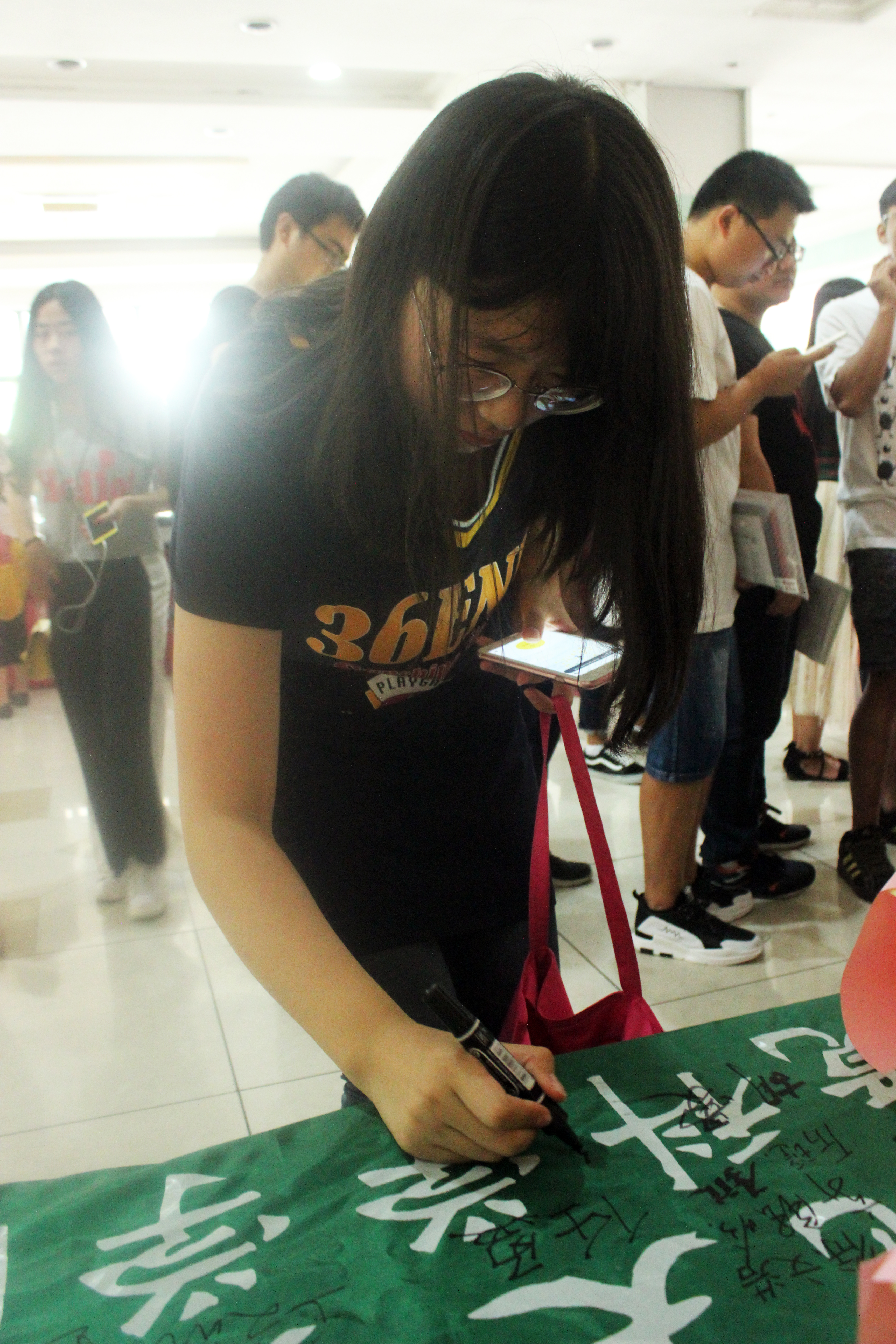 留念——除了“绿植领养”,在食堂博彩公司 还设置了“签院旗”活动,院旗作为博彩公司 的标志,将会是大家四年时光里重要的一部分,新生在跨入大学之际,将自己的名字签于院旗上,留下自己的姓名,留下自己的期许,也留下踏入博彩公司 的第一笔。
