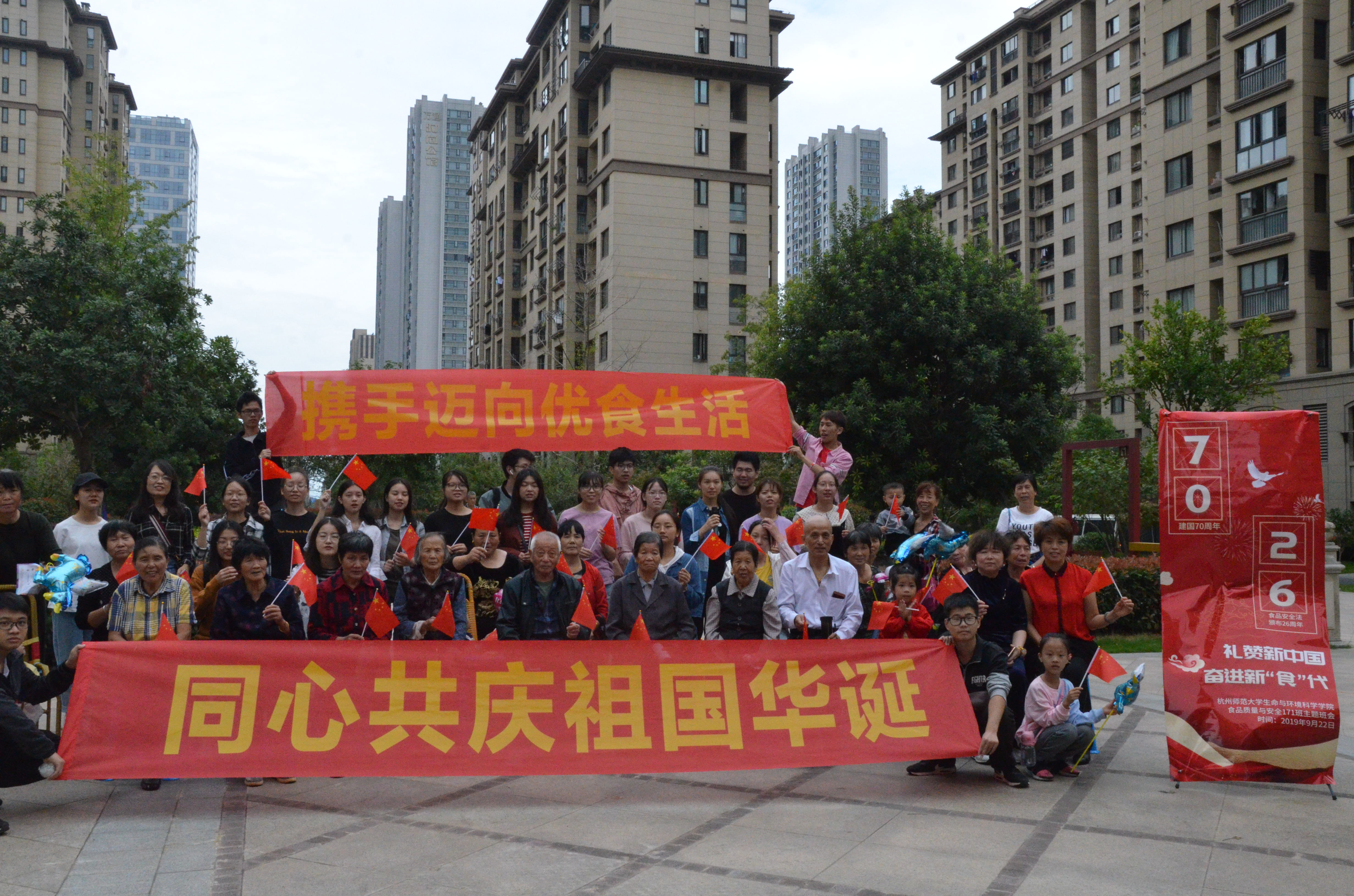70年来,中国人从艰难困苦到大步迈向小康时代,从吃饱饭到吃好饭。2019年不仅仅是中国成立70周年的伟大时刻,更是自1993年中华人民共和国食品安全法发布以来走过的第26个年头,中国食品安全法从无到有,不断地完善。为了庆祝中华人民共和国成立70周年,大力唱响礼赞新中国、奋进新时代的青春主旋律,博彩公司 食品质量与安全专业的学子们,于9月22日赴仓溢东苑社区开展了“礼赞新中国,奋进新‘食’代”主题班会。