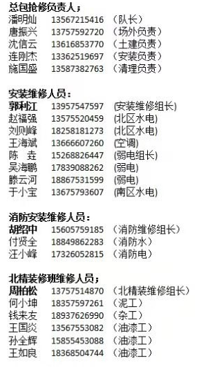 4、实验台、明线加装插座或网线、特殊用房 | 各房间的承建单位 斯尔福——王安邦,13515113305 金长安——葛磊,13914195030 求是——黄丁,18957161932 冬风——莫兴华,13732293377 |