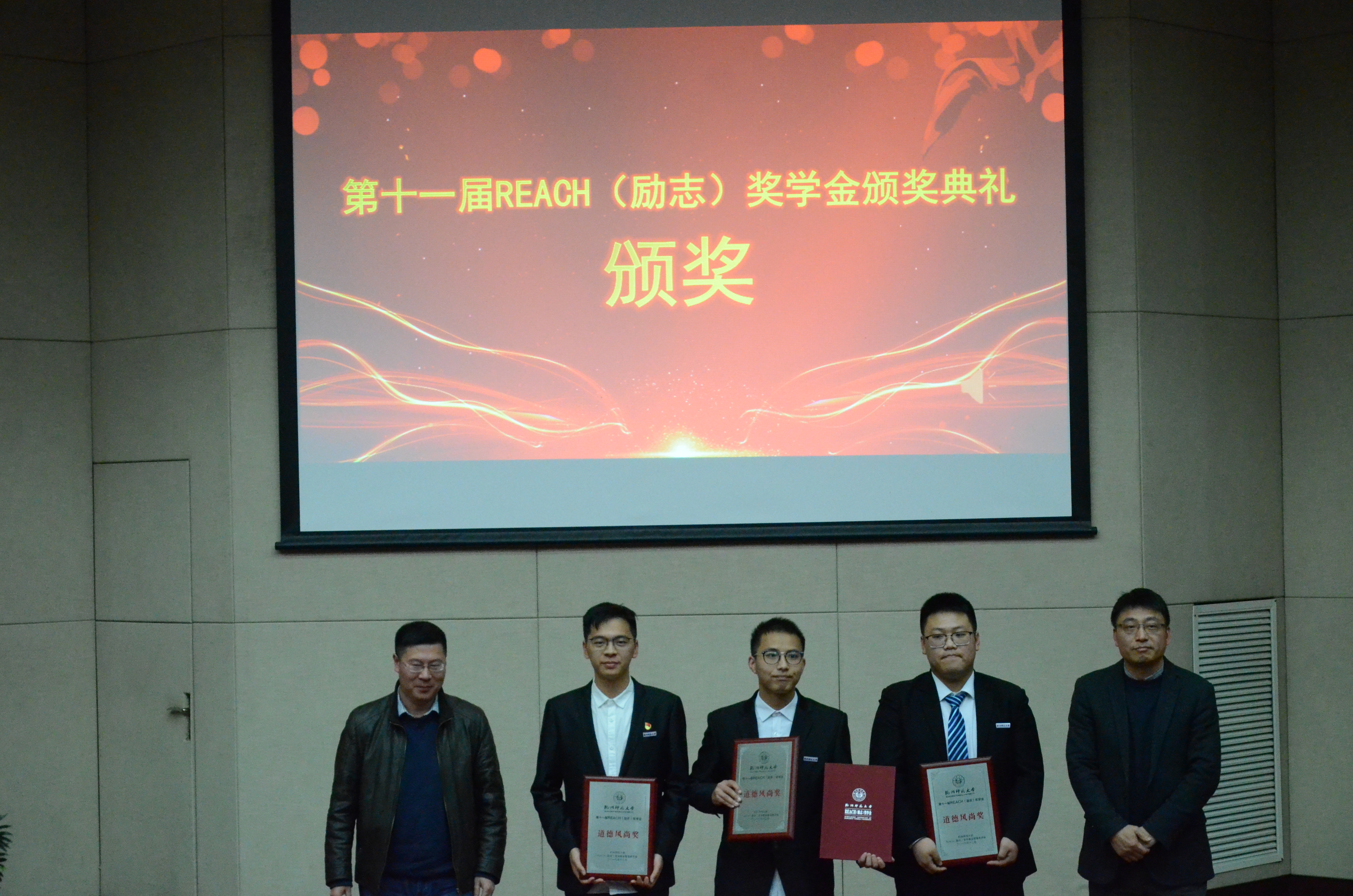 紧接着,由杭师大博彩公司 执行院长张杭君宣读了杭州师范大学第十一届REACH(励志)奖学金的获奖者名单。他们分别是:创新创业奖获得者:林达珂、赵佳斌、吕夏晨、王莎莎;社会工作奖获得者:单小草、郑思睿;学业优胜奖获得者:熊旭萍、刘永康;文艺体育奖获得者:赵沁怡;道德风尚奖获得者:寿泽榆、余思杭、柴家乐。颁奖嘉宾为获奖者们一一颁奖并合影留念。方剑成校友、肖自力校友以及贺国标校友分别接受了主持人的采访,向大家分享了自己职业生涯的经历以及对学弟学妹的建议等。单小草同学与寿泽榆同学也相继发表获奖感言,表达了自己对于REACH(励志)奖学金的感谢。