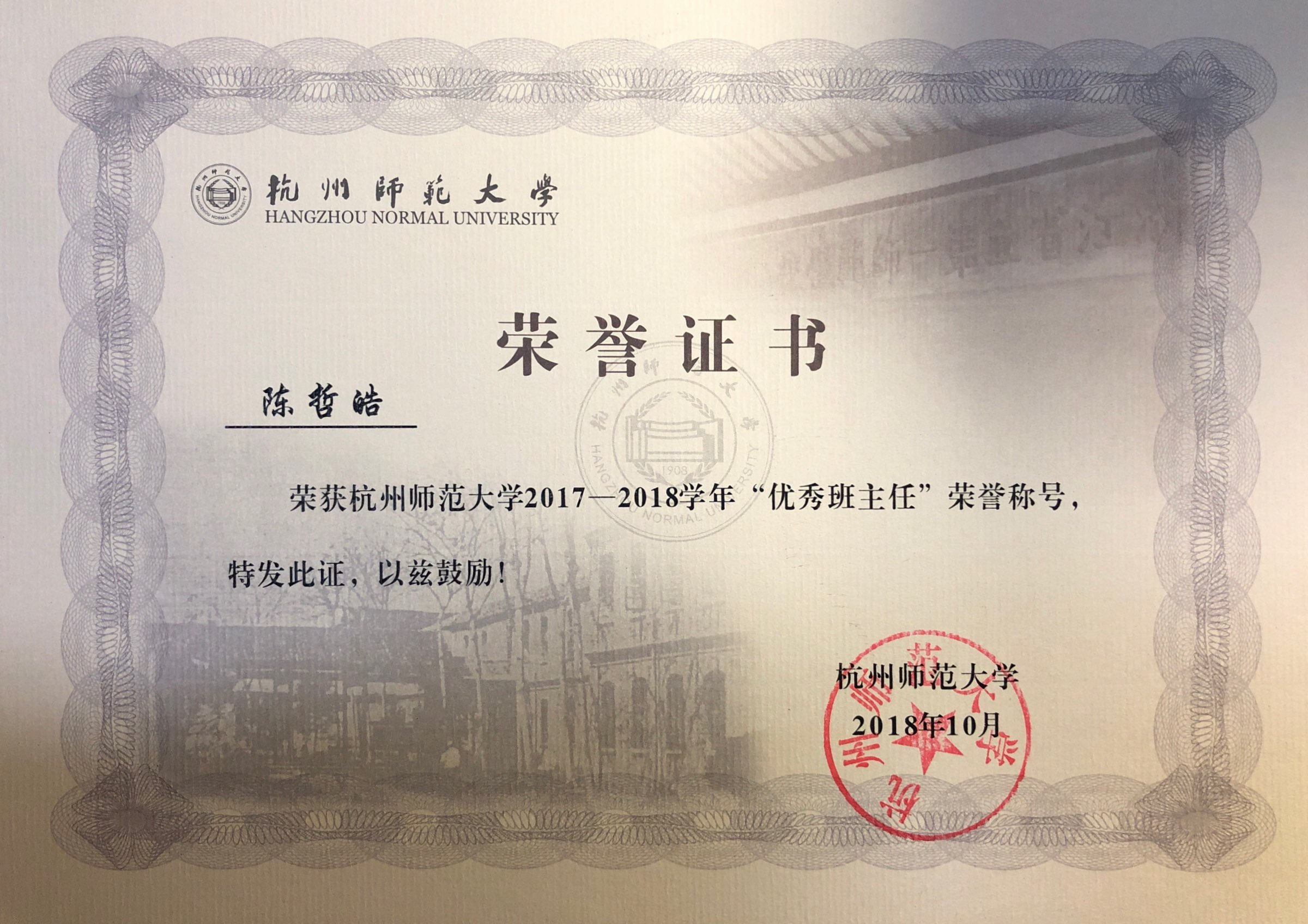 陈老师在当班主任期间连续三次获得优秀班主任称号,带队实习时被评为优秀实习指导老师。去年全球最大博彩公司排名 推选陈哲皓老师评选校最喜爱的老师,同学们都积极踊跃地为陈老师投票。同学们也都很喜欢陈老师的课,因此他的课程被评为了校最喜欢的课程。