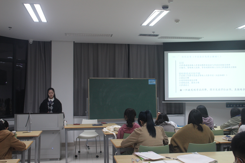生科191班的班委则通过关于诚信的名人名言让同学们更加清晰地了解诚信的概念和诚信的品质。例如泰戈尔的虚伪永远不能凭借它生长在权力中而变成真实,西塞罗的没有诚实何来尊严,韩非子的小信诚则大信立。同时生科204班和生科191班通过游戏“击鼓传花”的方式,在有奖有罚的娱乐活动中营造了融洽氛围,让同学们在欢声笑语中掌握诚信知识以及学校的相关规定。生科202班学生干部则另辟蹊径,为同学们讲述了奖学金的来源,如何拿到奖学金以及获得奖学金的多方益处,以此激励同学们奋发学习,诚信考试,交出一份令自己满意的答卷。