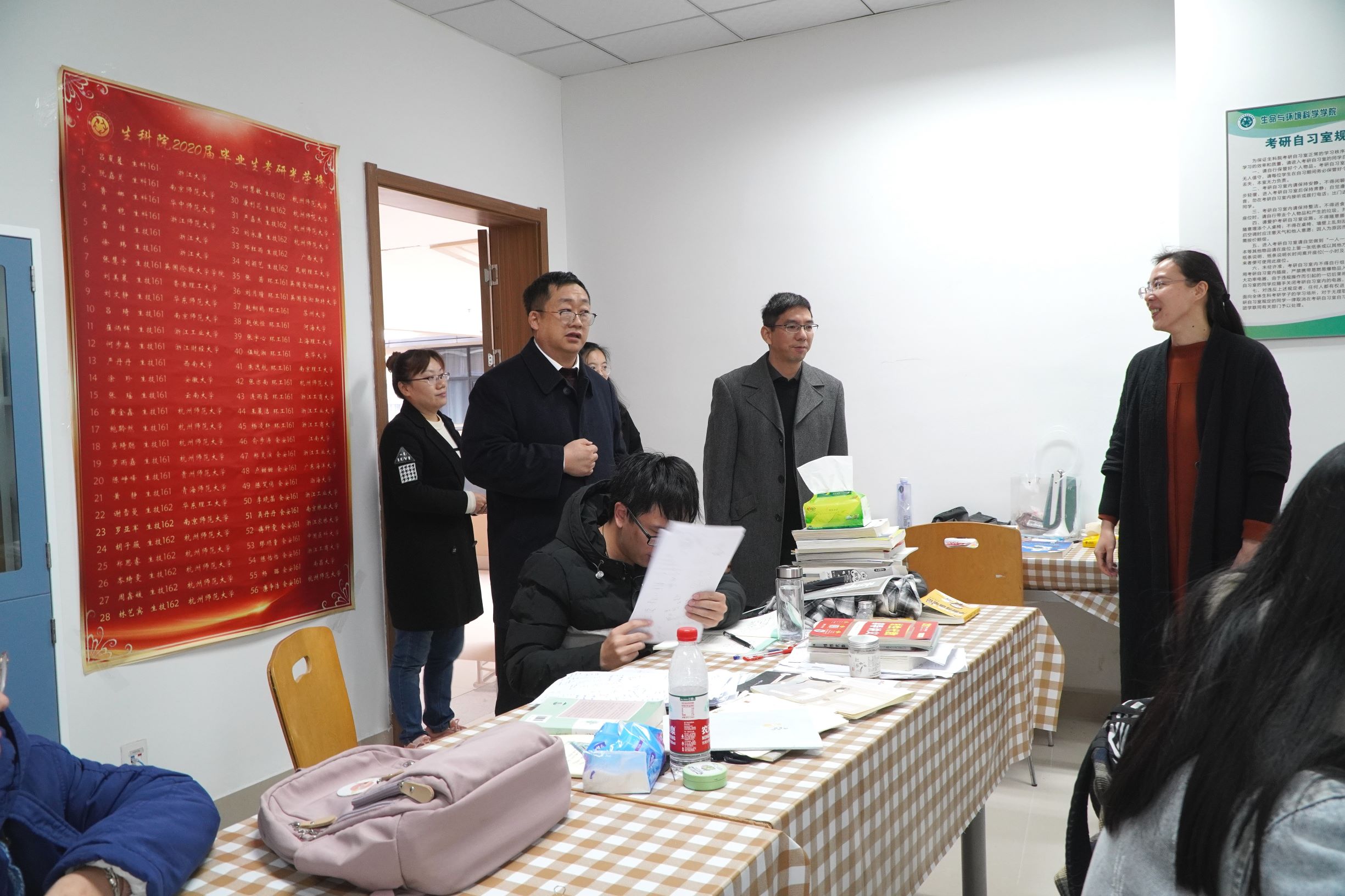 为了坚定考研学子的信念,增强考研信心,缓解备考压力,早晨10点,全球最大博彩公司排名 执行院长张杭君、党委书记张立明、副院长于彦春、党委副书记余洁以及学工办主任倪雅走访考研自修室慰问考研学子,为考研学子送上冬日的温暖。