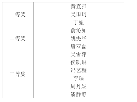通过三轮比赛,最终评选一等奖3人、二等奖3人、三等奖6人。