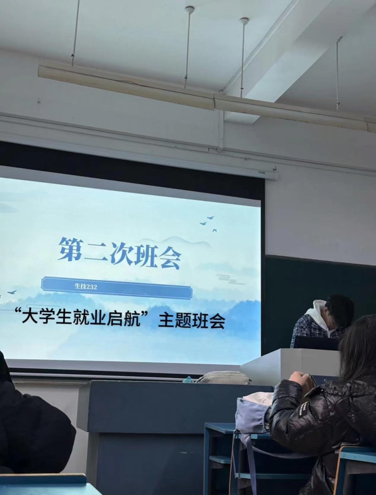 为了帮助同学们强化就业意识,初步明确就业发展方向,2024年1月2日,生技232班团支部在杭州师范大学下沙校区A号楼402教室,召开了“大学生就业引航”主题班会。