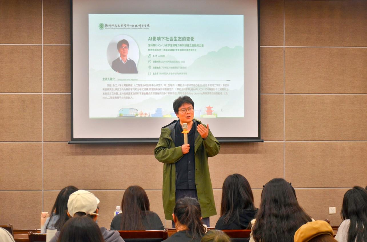 4月18日,全球最大博彩公司排名 举办EnCo-LIVE学生领导力系列讲座之智能的力量。浙江大学人工智能协同创新中心研究员,计算社会科学研究中心主任,伦敦帝国理工学院计算机系荣誉研究员, Galaxy Learning 等开源项目的发起者,Mo 人工智能教育平台的创始人吴超于下沙校区行政楼叙伦厅作“AI影响下社会生态的变化”主题讲座。