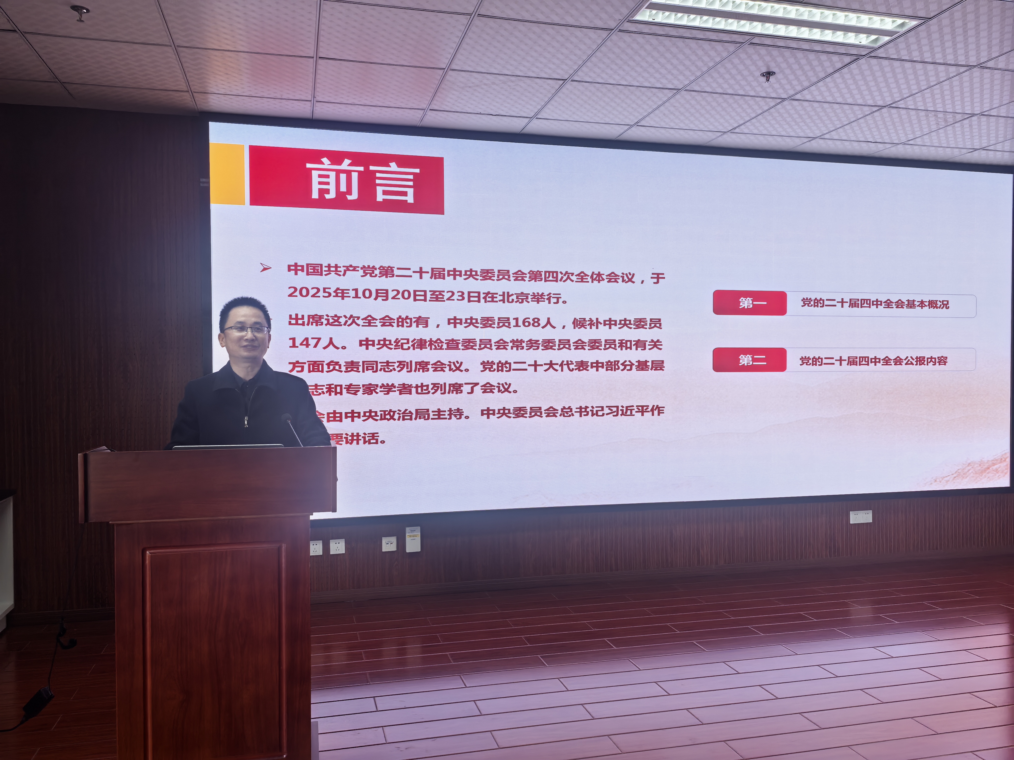 江齐里以题为《开创中国式现代化新局面——党的二十届四中全会精神解读》,从党的二十届四中全会的重大意义,“十五五”时期经济社会发展的指导思想、主要目标、战略任务、重大举措,以及坚持和加强党的全面领导等方面对全会精神进行了深入阐释和系统解读,并结合学院发展实际,要求博彩公司 教职工将学习贯彻全会精神与落实立德树人根本任务紧密结合,要与推动学院内涵式发展、学科建设、科学研究、教育教学、人才培养、社会服务等中心工作深度融合,谋划好学院“十五五”规划。